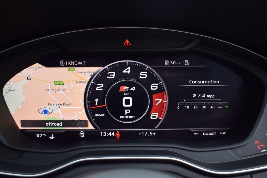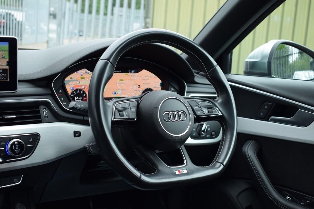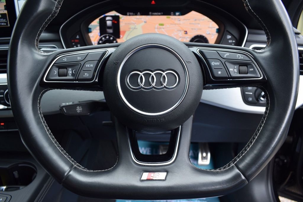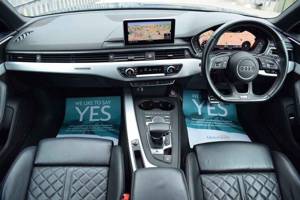 This Audi S4 looks stunning in this sporty colour combo and comes with a great specifications including 19" wheels, RS honeycomb grill, navigation, virtual cockpit and more. BLACK METALLIC - BLACK CLOTH / LEATHER INTERIOR - BLACK EDITION STYLING - 18" MULTI SPOKE WHEELS IN GLOSS BLACK - VIRTUAL COCKPIT - TECHNOLOGY PACKAGE - NAVIGATION SAT NAV - AUDI UPGRADED SURROUND SOUND - BI XENON HEADLAMPS - LED DAYTIME LIGHTS - APPLE CAR PLAY / ANDROID - SMARTPHONE - BLACK ROOF RAILS - REAR PARKING SENSORS - DAB DIGITAL RADIO - MULTI FUNCTION S/WHEEL - CRUISE CONTROL - PRIVACY GLASS - AUTO HEADLIGHT ACTIVATION - AUTO WIPER ACTIVATION - AIR CONDITIONING - CLIMATE CONTROL - EURO 6 ULEZ COMPLIANT