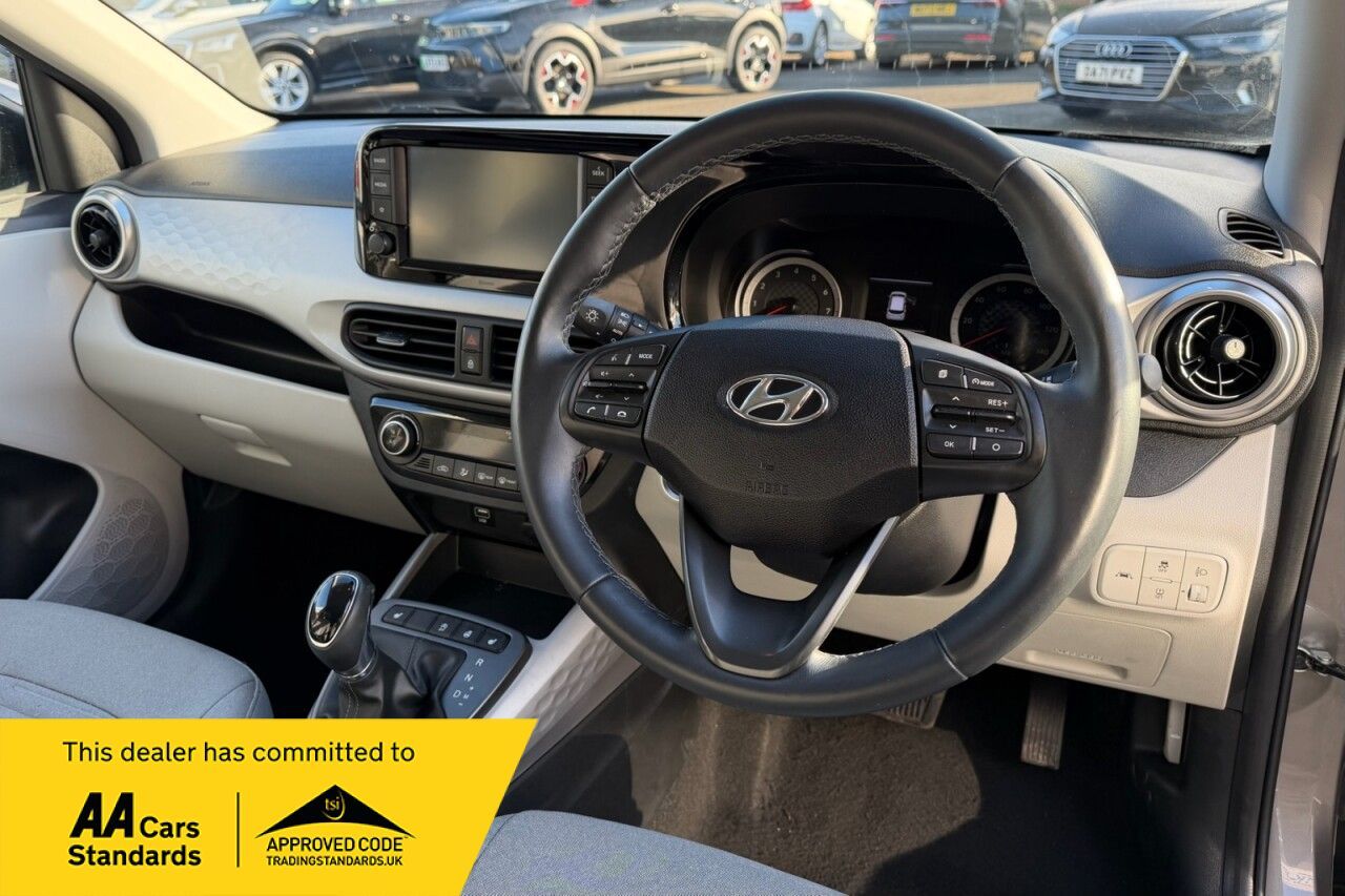 This 2022 Hyundai i10 Premium boasts exceptionally low mileage for its age, having covered just 9996 miles, and comes with a full dealership service history, two keys one owner from new. Inside, you'll find comfortable heated front seats, automatic headlights, and climate control air conditioning, while the wireless Android Auto and Apple CarPlay connectivity keep you seamlessly connected on the go. The Premium trim level of this Hyundai i10 offers a host of desirable features that set it apart. Its low insurance group rating indicates that running costs are likely to be more affordable compared to similar vehicles. Combined with its minimal mileage and comprehensive service record, this i10 represents excellent value and a well maintained example of this popular city car. This vehicle, much like our others, comes with a minimum of 3-month warranty, however, this vehicle is still under Hyundai warranty. It is also subject to our 6-month MOT and Service guarantee. ========= Specification: 8" Touchscreen Infotainment System Wireless Apple CarPlay & Wireless Android Auto Rear-View Parking Camera Heated Front Seats Heated Steering Wheel Bi-Function Projection Headlights with LED DRL Adaptive High Beam Assist Autonomous Emergency Braking with Forward Collision Warning Lane Keep Assist & Lane Departure Warning Cruise Control with Speed Limiter Keyless Entry & Push-Button Start Climate Control Air Conditioning Electric Heated Door Mirrors Privacy Glass (Rear & Tailgate) 16" Alloy Wheels ========= Service History: 16/02/2024 - 3,853 miles - Hyundai; 19/02/2025 - 7,355 miles - Hyundai; 24/11/2025 - 10,134 miles - Angus MacKinnon Ltd. =========