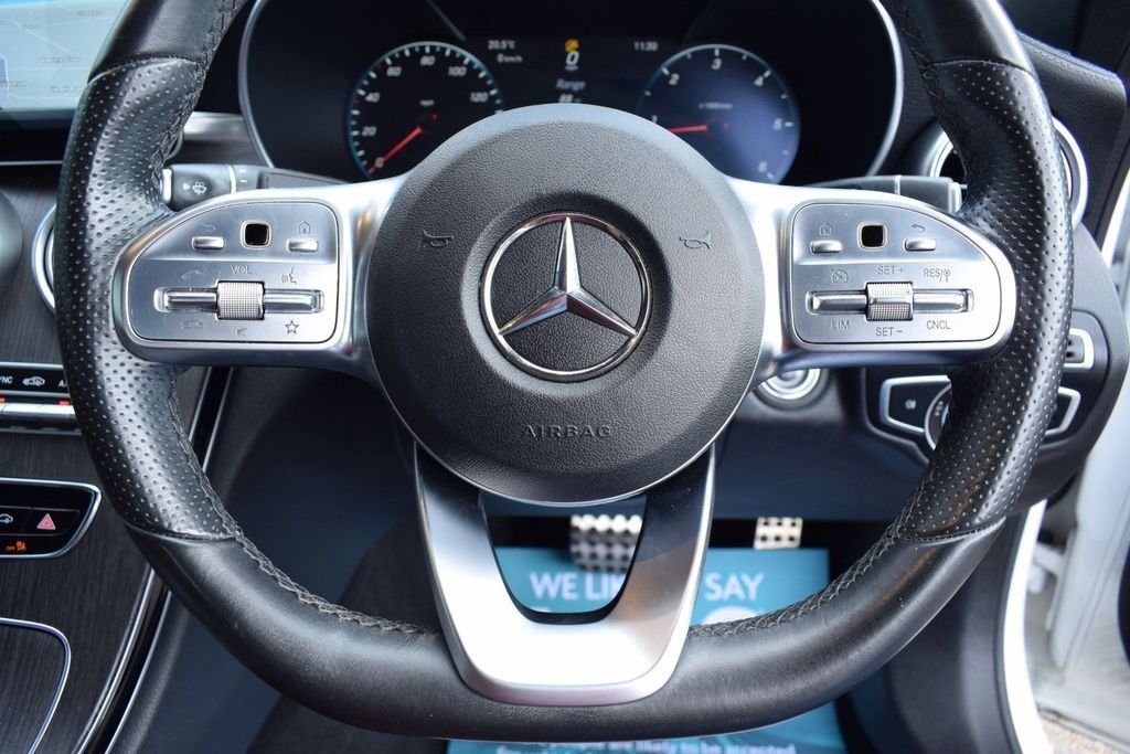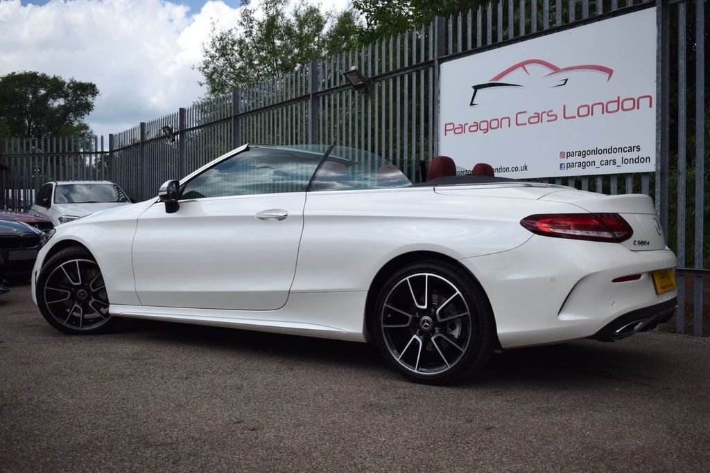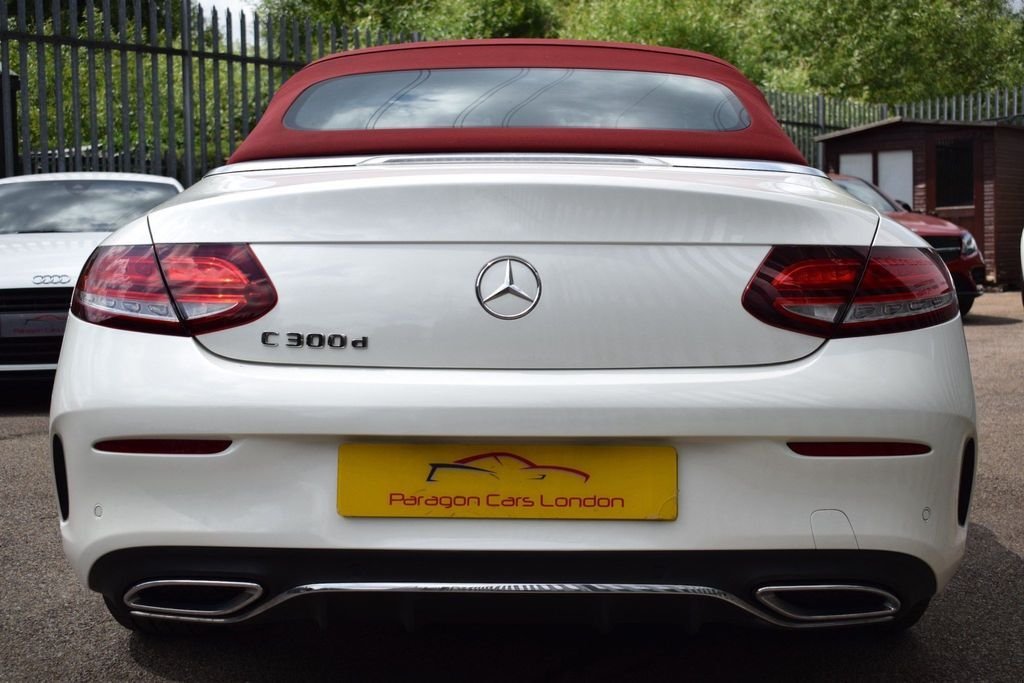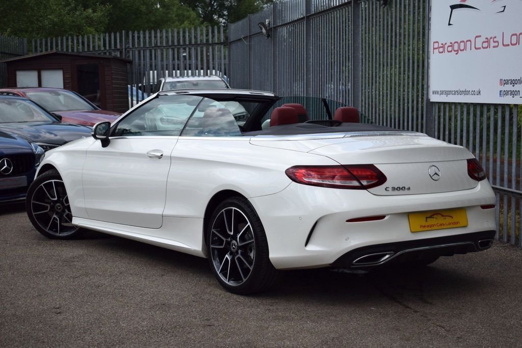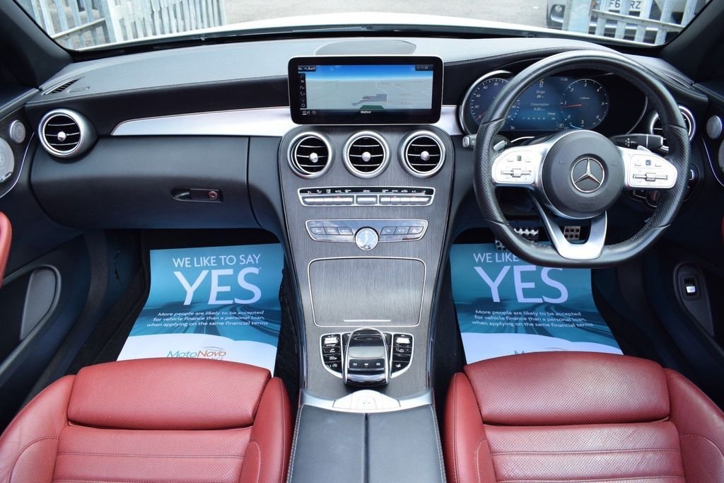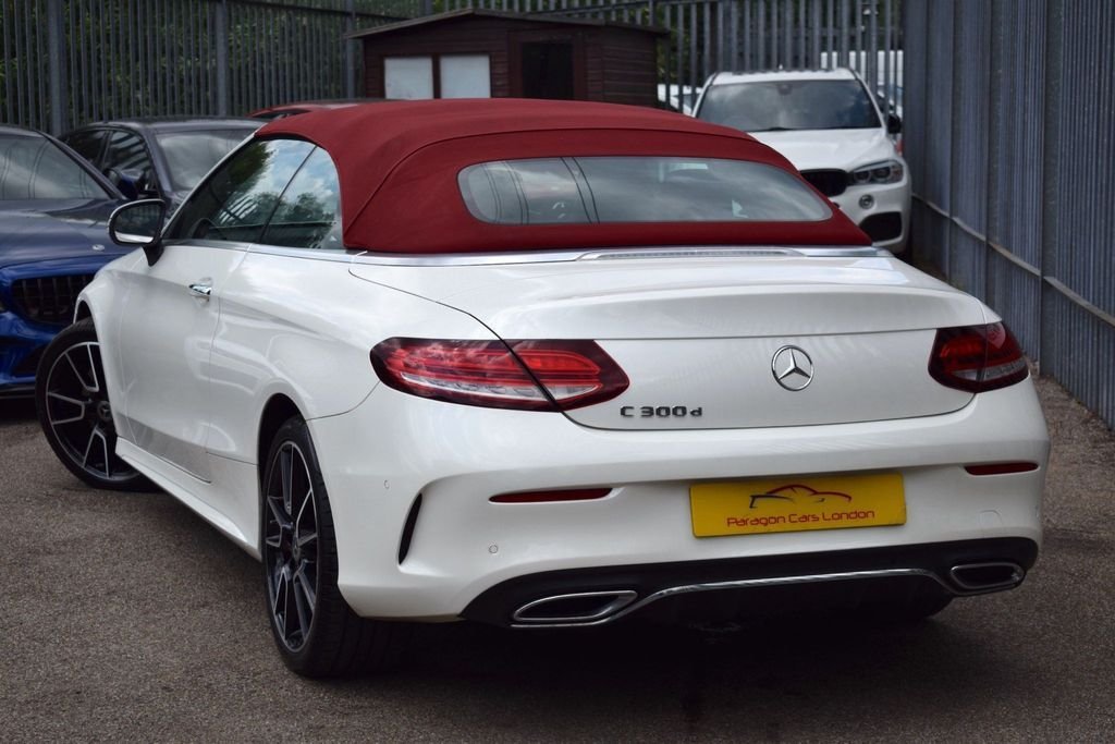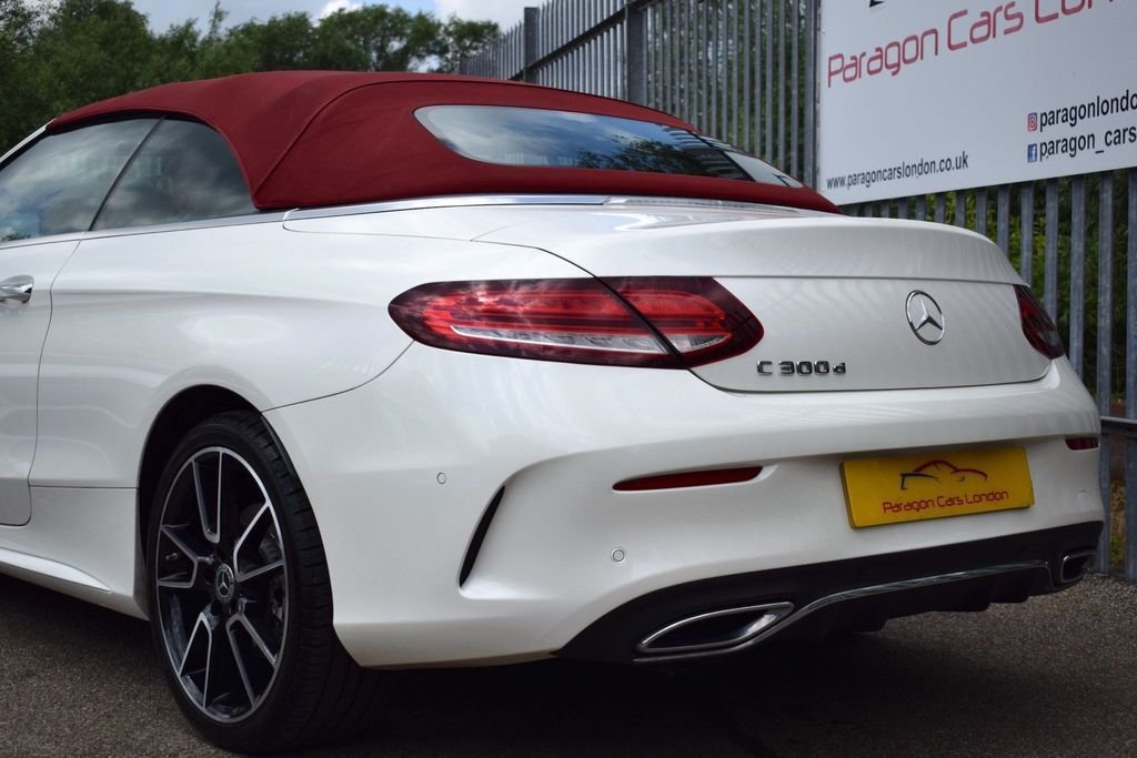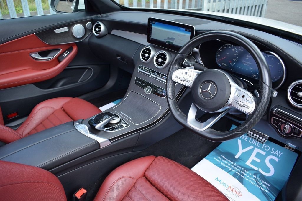 This Mercedes C300D is a rare car which looks great in this sporty colour combo. It has a great spec including 19" wheels, digital cockpit, burmester sound and more. DIAMOND WHITE - RED FULL LEATHER INTERIOR - RED CONVERTIBLE ROOF - AMG BODYSTYLING - 19" C43 WHEELS BLACK DIAMOND CUT - PREMIUM PLUS PACKAGE - DIGITAL DASH / VIRTUAL COCKPIT - PANORAMIC GLASS SUNROOF - AIR SCARF (NECK LEVEL HEATING) - KEYLESS ENTRY / START - 360 VIEW CAMERA - REVERSE CAMERA - NAVIGATION SAT NAV - BI XENON HEADLAMPS - LED DAYTIME LIGHTS - CAR PLAY (APPLE & ANDROID) - HEATED FRONT SEATS - AMBIENT LIGHTING - BLUETOOTH PHONE PREP - BLUETOOTH AUDIO STREAM - ELECTRIC FOLDING MIRRORS - FRONT & REAR PARKING SENSORS - DAB DIGITAL RADIO - MULTI FUNCTION S/WHEEL - CRUISE CONTROL - PRIVACY GLASS - AUTO HEADLIGHT ACTIVATION - AUTO WIPER ACTIVATION - AIR CONDITIONING - CLIMATE CONTROL - EURO 6 ULEZ COMPLIANT